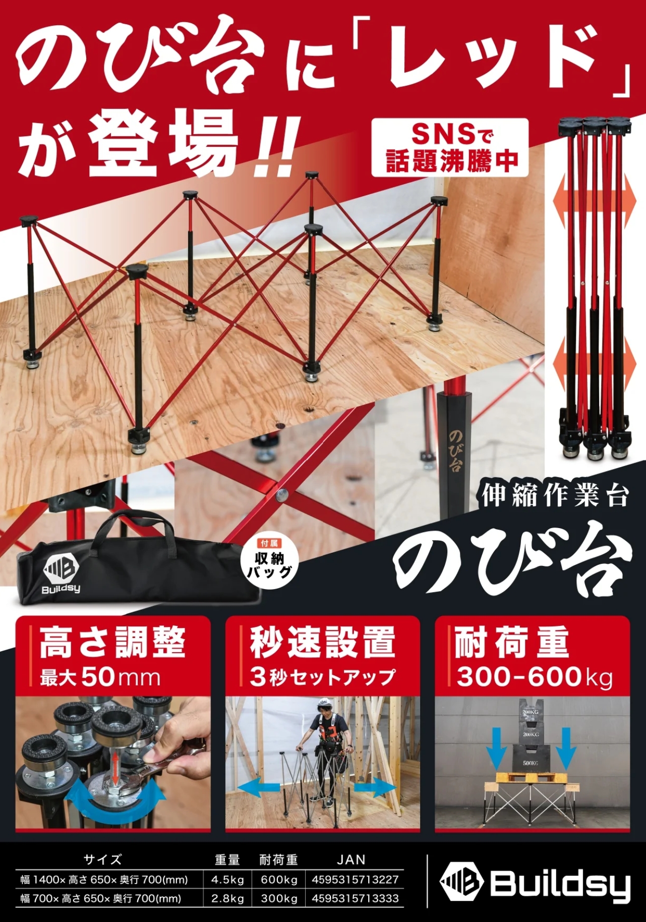 【Buildsy】 のび台 レッド W700H650